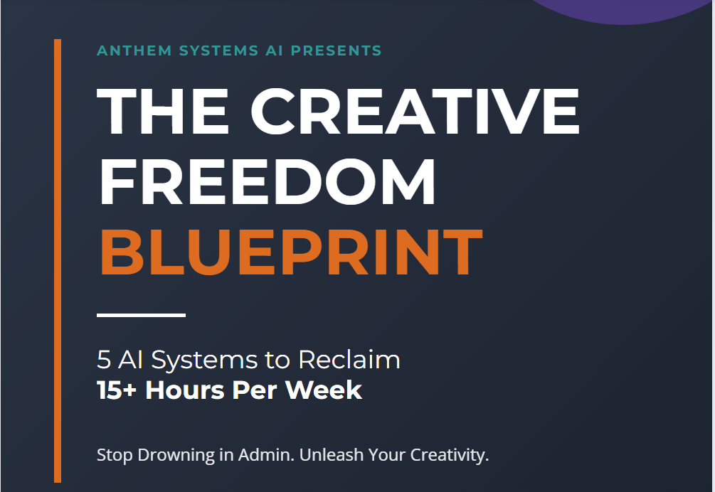 Download the FREE Creative Freedom Blueprint and discover the 5 AI systems that let you stop drowning in admin and start creating again.